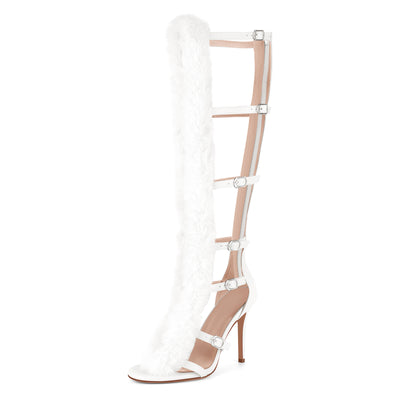 Fur Buckle Strap Hollow Boots Sandals