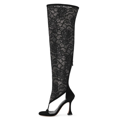 Round Toe Lace Mesh Thigh High Bootie Sandals