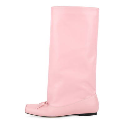 Pointed Toe Side Tassel Zipper Fold Over Boots