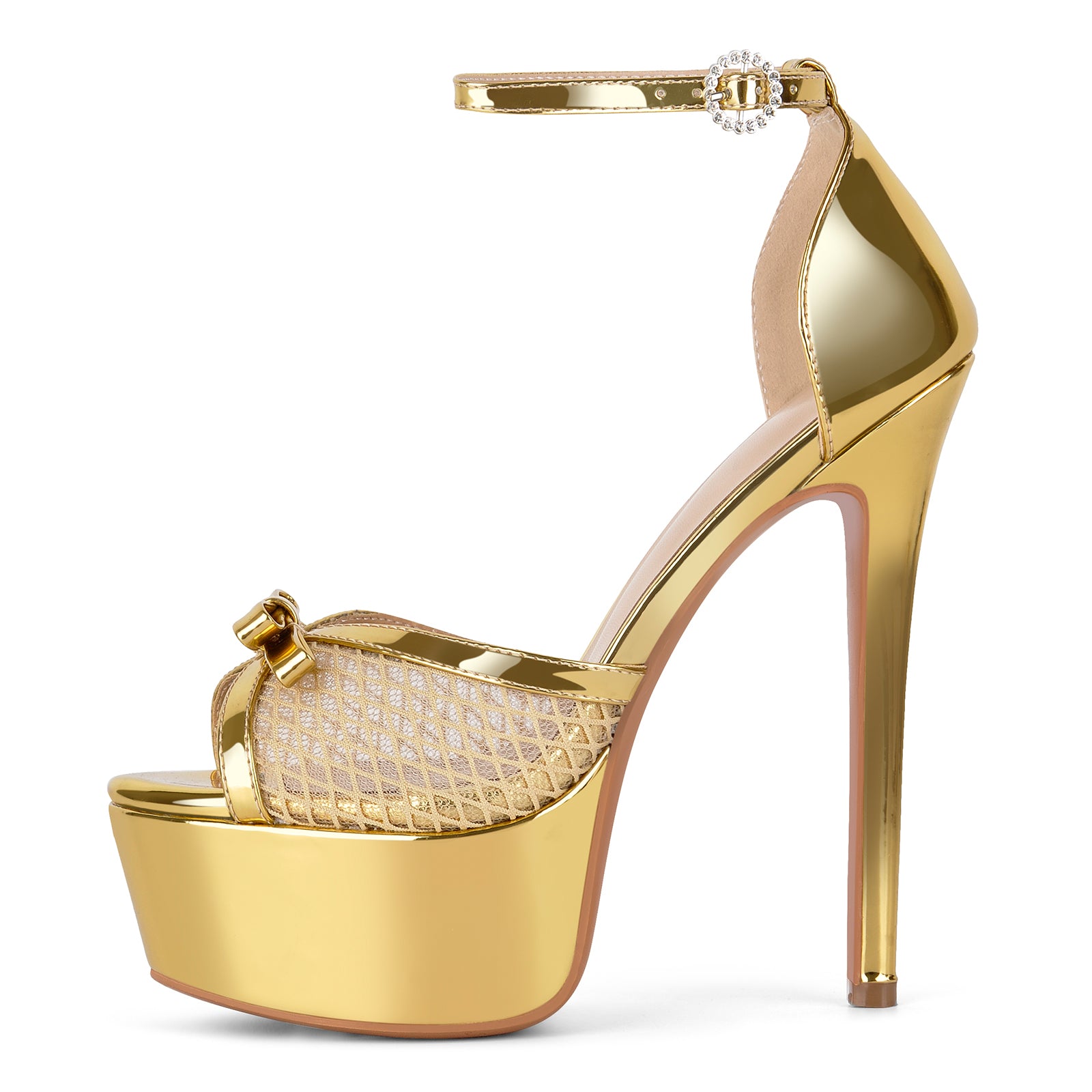 Mesh Buckle Ankle Strap Platform Stiletto Sandals