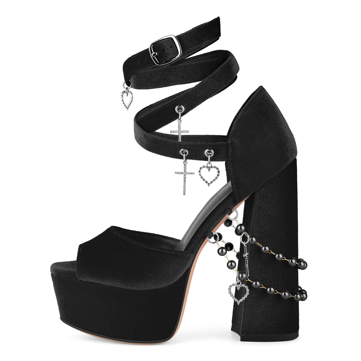 Pendant Platform Wrap Buckle Strap Velvet Sandals