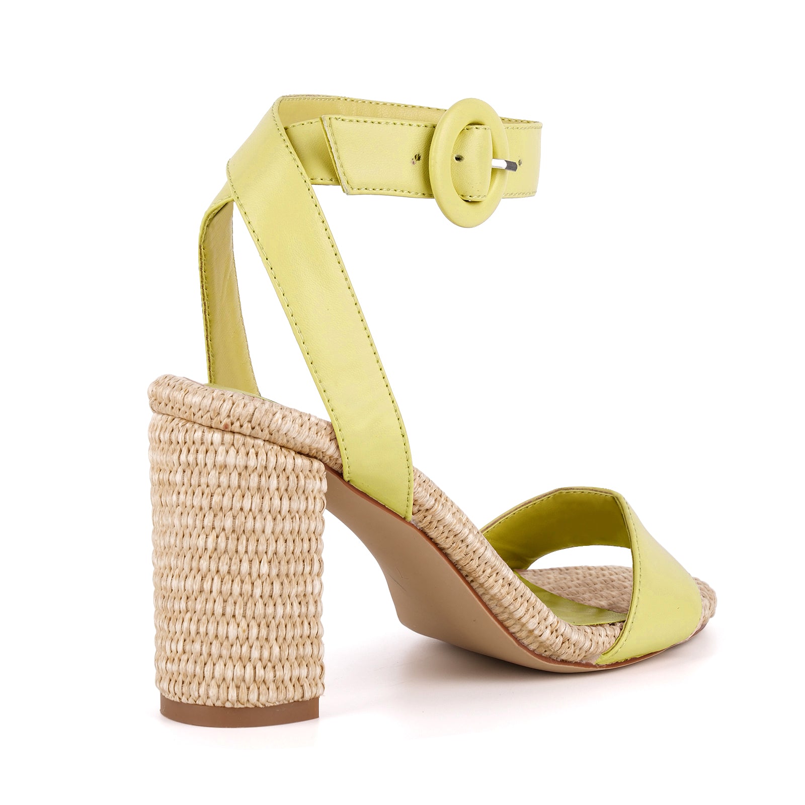 Straw Ankle Strap Chunky Heel Sandals