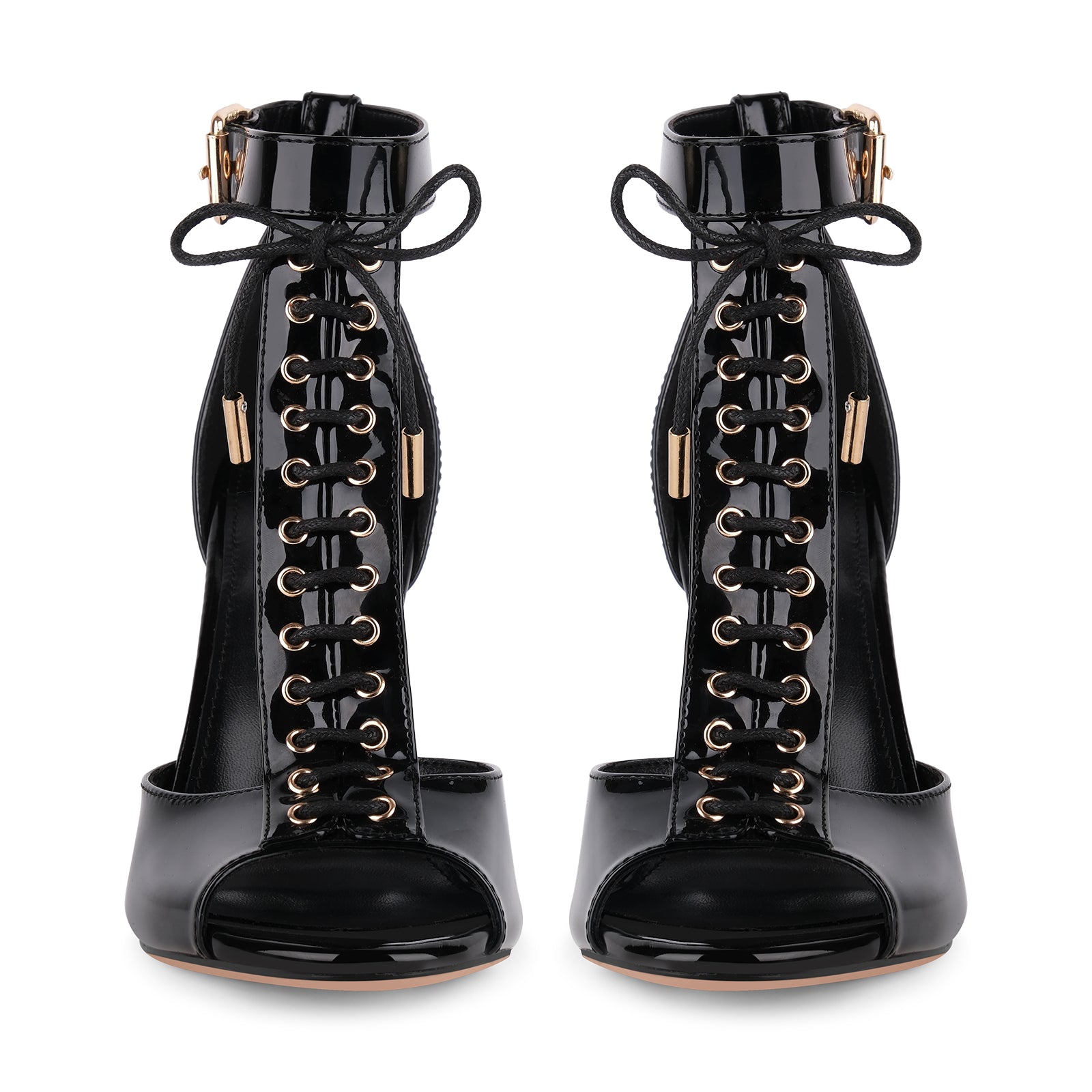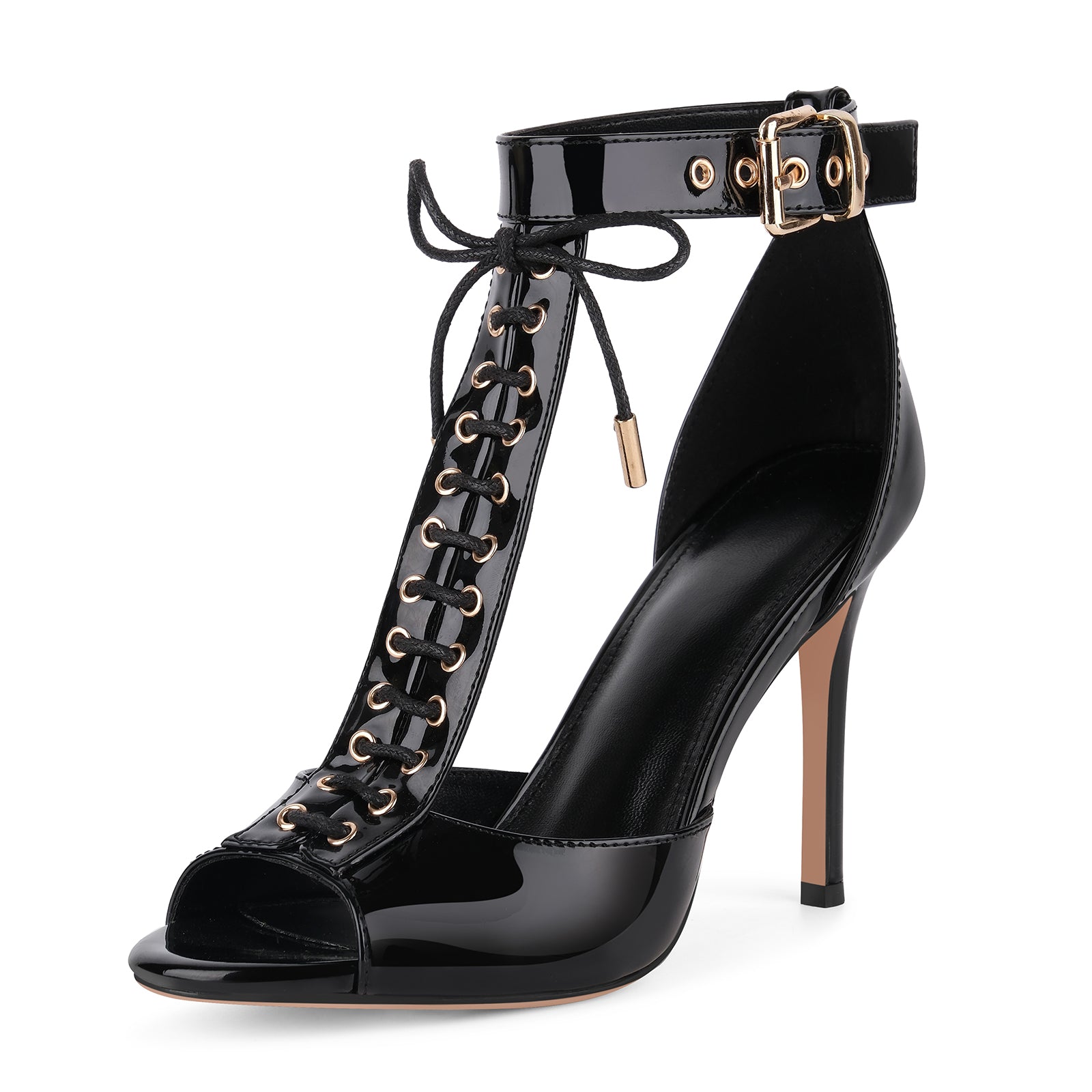 Buckle T-Strap Lace-up Patent Sandals