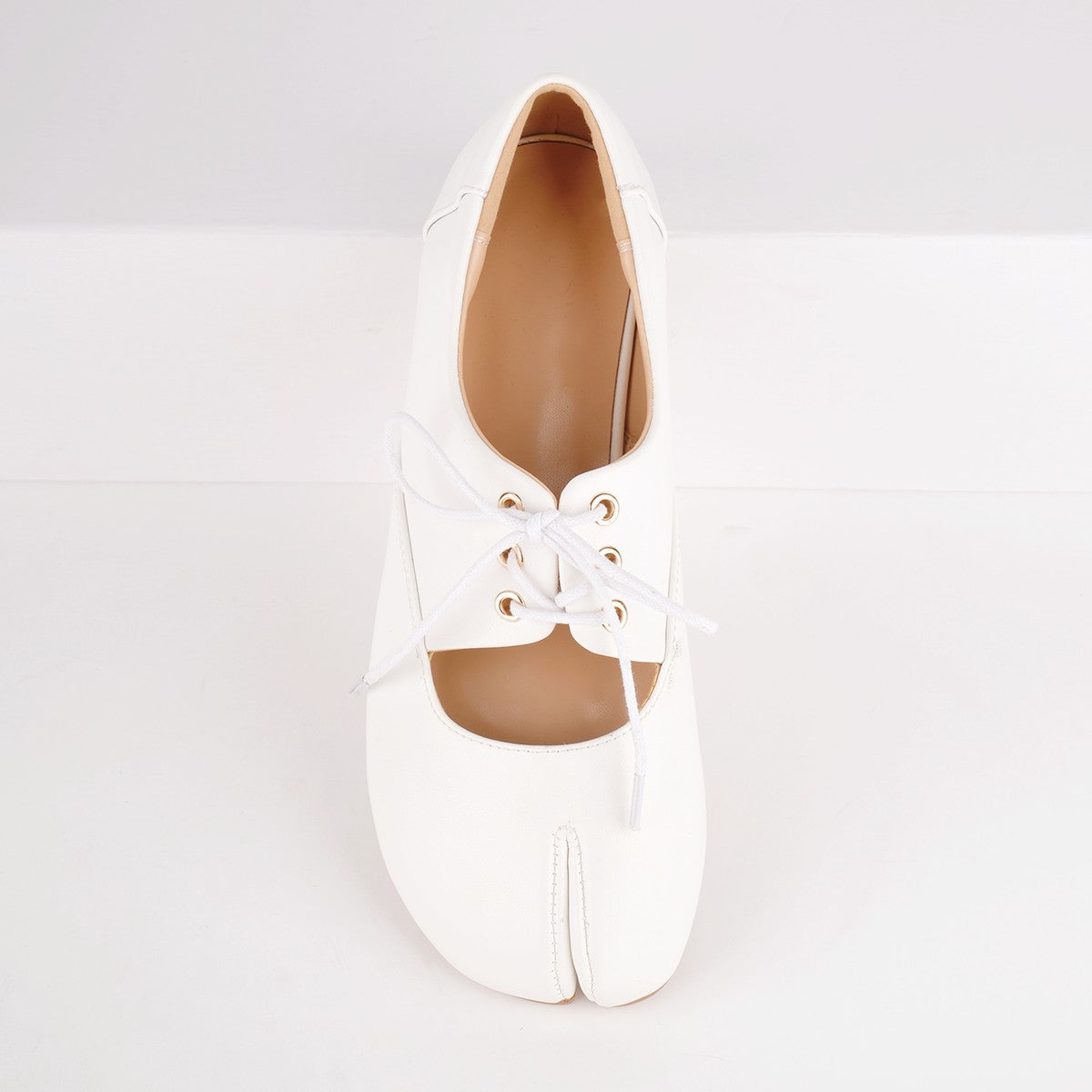 {"id":46074029834393,"title":"White \/ US5","option1":"White","option2":"US5","option3":null,"sku":"CD251232A-US5","requires_shipping":true,"taxable":true,"featured_image":{"id":44865784938649,"product_id":8616162558105,"position":1,"created_at":"2026-01-09T11:45:17+08:00","updated_at":"2026-01-09T11:45:19+08:00","alt":null,"width":1600,"height":1600,"src":"\/\/www.onlymaker.com\/cdn\/shop\/files\/CD251232A_1.jpg?v=1767930319","variant_ids":[46074029834393,46074029867161,46074029899929,46074029932697,46074029965465,46074029998233,46074030031001,46074030063769,46074030096537,46074030129305,46074030162073,46074030194841]},"available":true,"name":"Round Toe Tabi Lace-up Flats - White \/ US5","public_title":"White \/ US5","options":["White","US5"],"price":5999,"weight":1100,"compare_at_price":7999,"inventory_quantity":22,"inventory_management":"shopify","inventory_policy":"continue","barcode":null,"featured_media":{"alt":null,"id":35567498625177,"position":1,"preview_image":{"aspect_ratio":1.0,"height":1600,"width":1600,"src":"\/\/www.onlymaker.com\/cdn\/shop\/files\/CD251232A_1.jpg?v=1767930319"}},"requires_selling_plan":false,"selling_plan_allocations":[]}