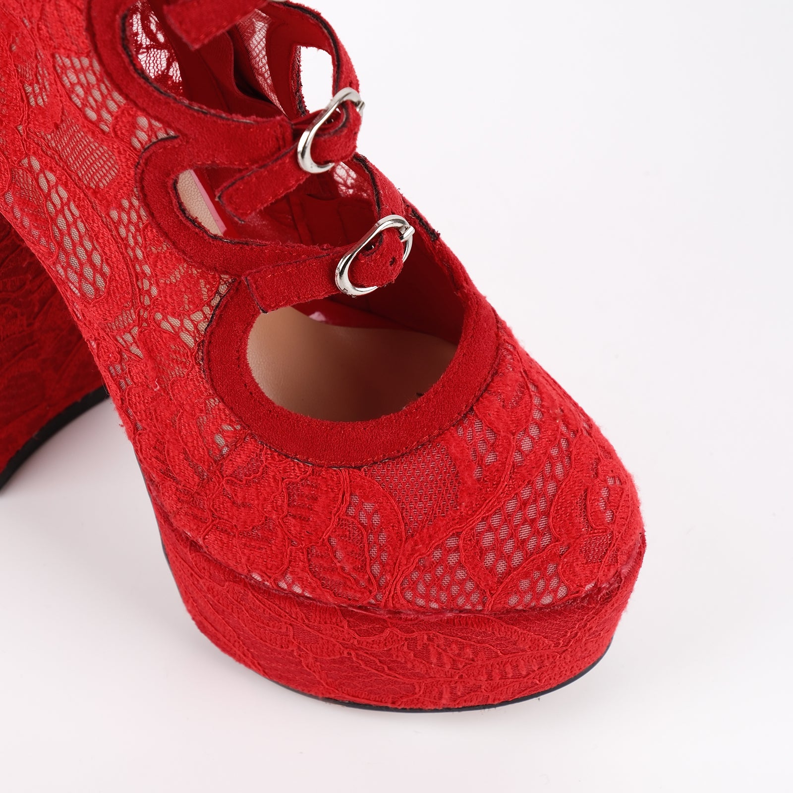 Mesh Buckle Ankle Strap Platform Stiletto Sandals