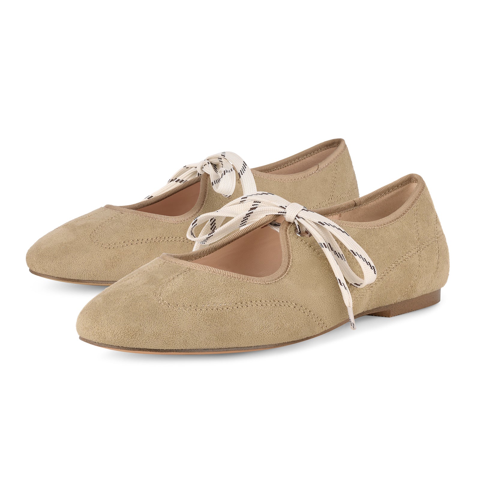 Suede Round Toe Lace-up Flats